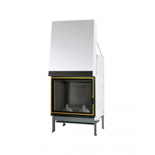 Пристенный фронтальный камин в стиле кантри из разноцветного бута и ракушечника с балкой из массива дуба.